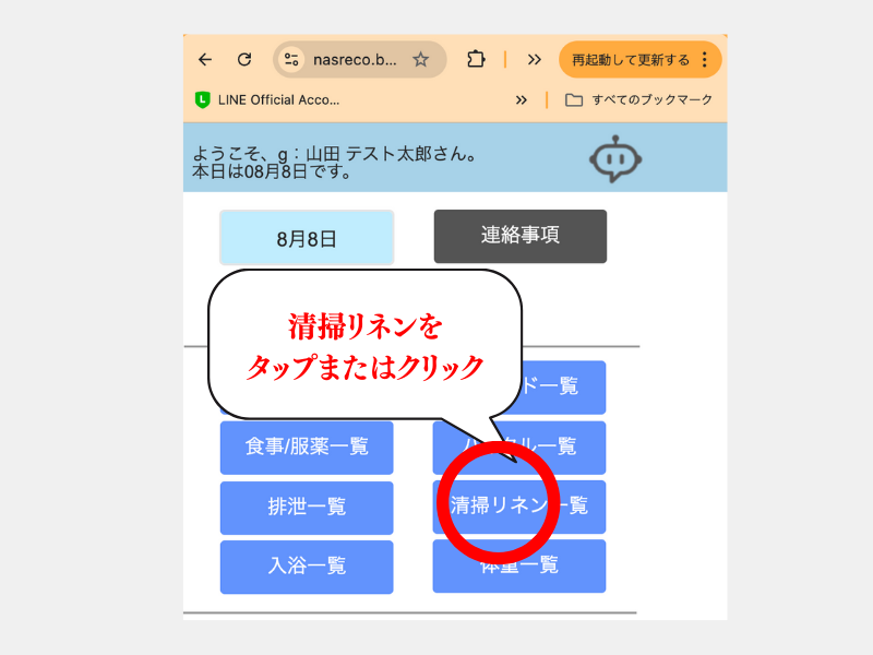 8-1:清掃リネン一覧の見方 2024 8/13 このページを印刷する 8-1-1:清掃リネン一覧の見方 8-1-2:注意事項 戻るボタンは右にある【三】を利用してください。その他の戻るボタンを使うと【自動ログアウト】され、再ログインが必要になります。 未分類 基本操作