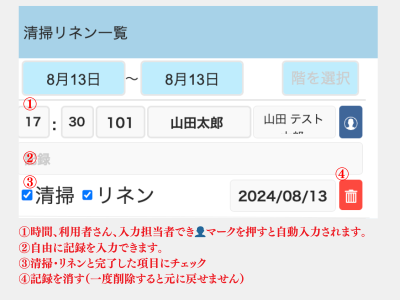 8-2-1:清掃リネン一覧の入力方法