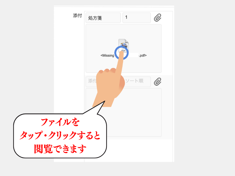 登録した画像やPDFを見ることができます。ファイルを見るときは、ファイルをタップ・クリックすると詳細が表示されます。
