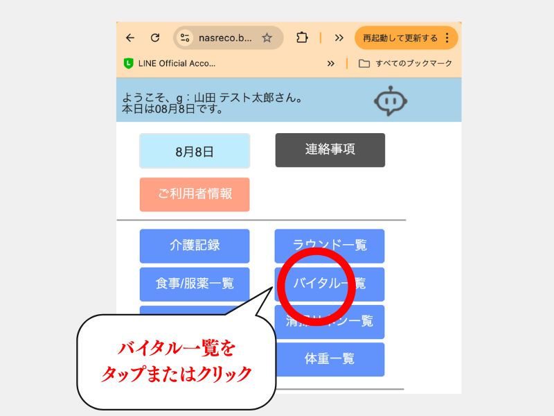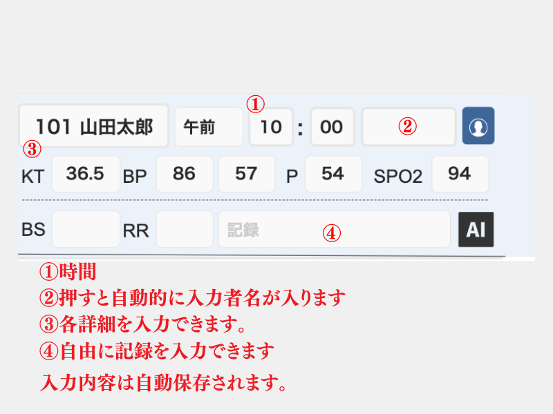 6-2:バイタル一覧の入力方法 2024 8/13 このページを印刷する 6-2-1:バイタル一覧入力方法 6-2-2:注意事項 戻るボタンは右にある【三】を利用してください。その他の戻るボタンを使うと【自動ログアウト】され、再ログインが必要になります。 未分類 基本操作
